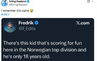网友7年前盛赞一位挪威天才,哈兰德社媒转发:我记得他的名字